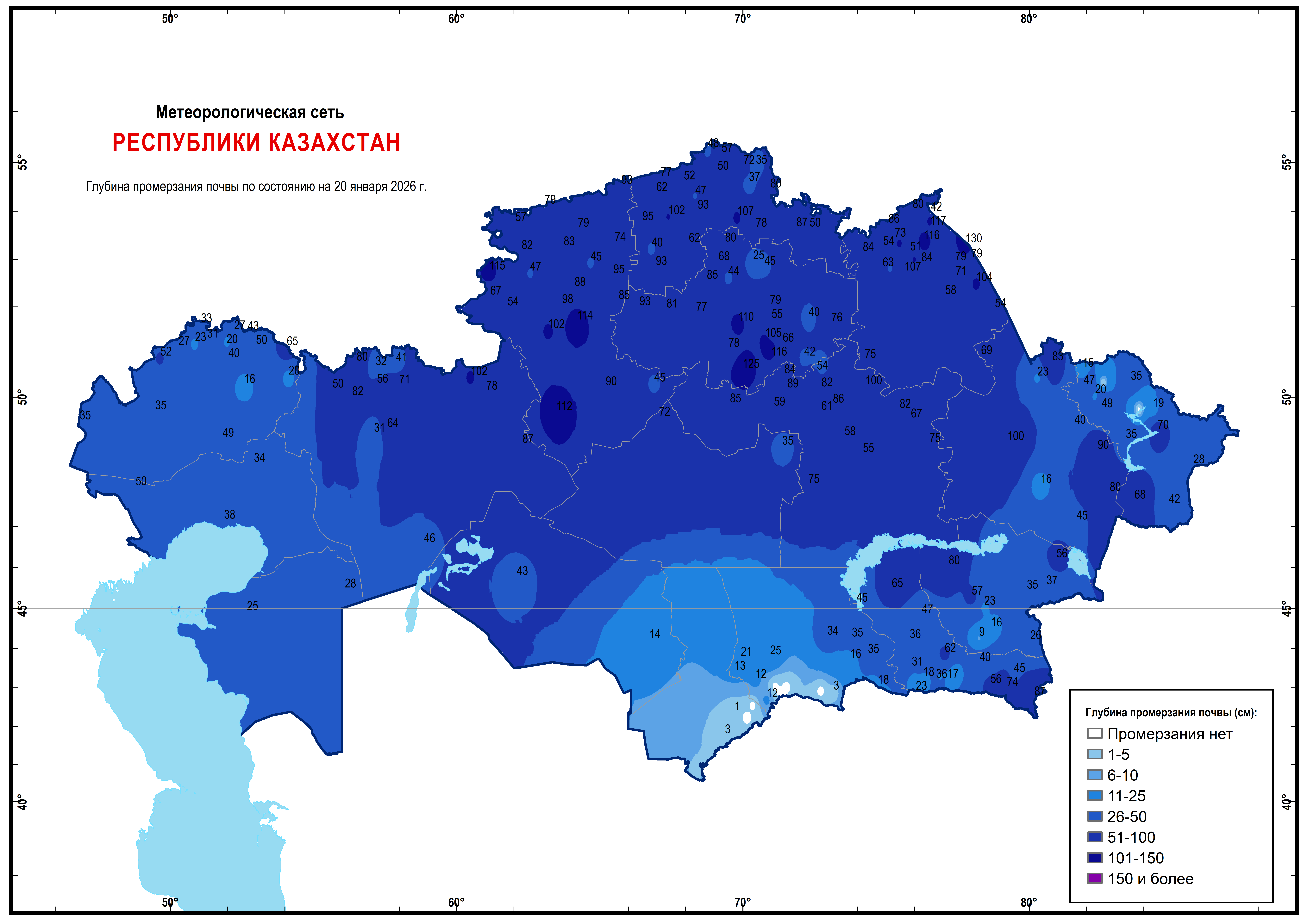 As of January 20, 2026, soil freezing depths across most of the country reached 50 cm or more.