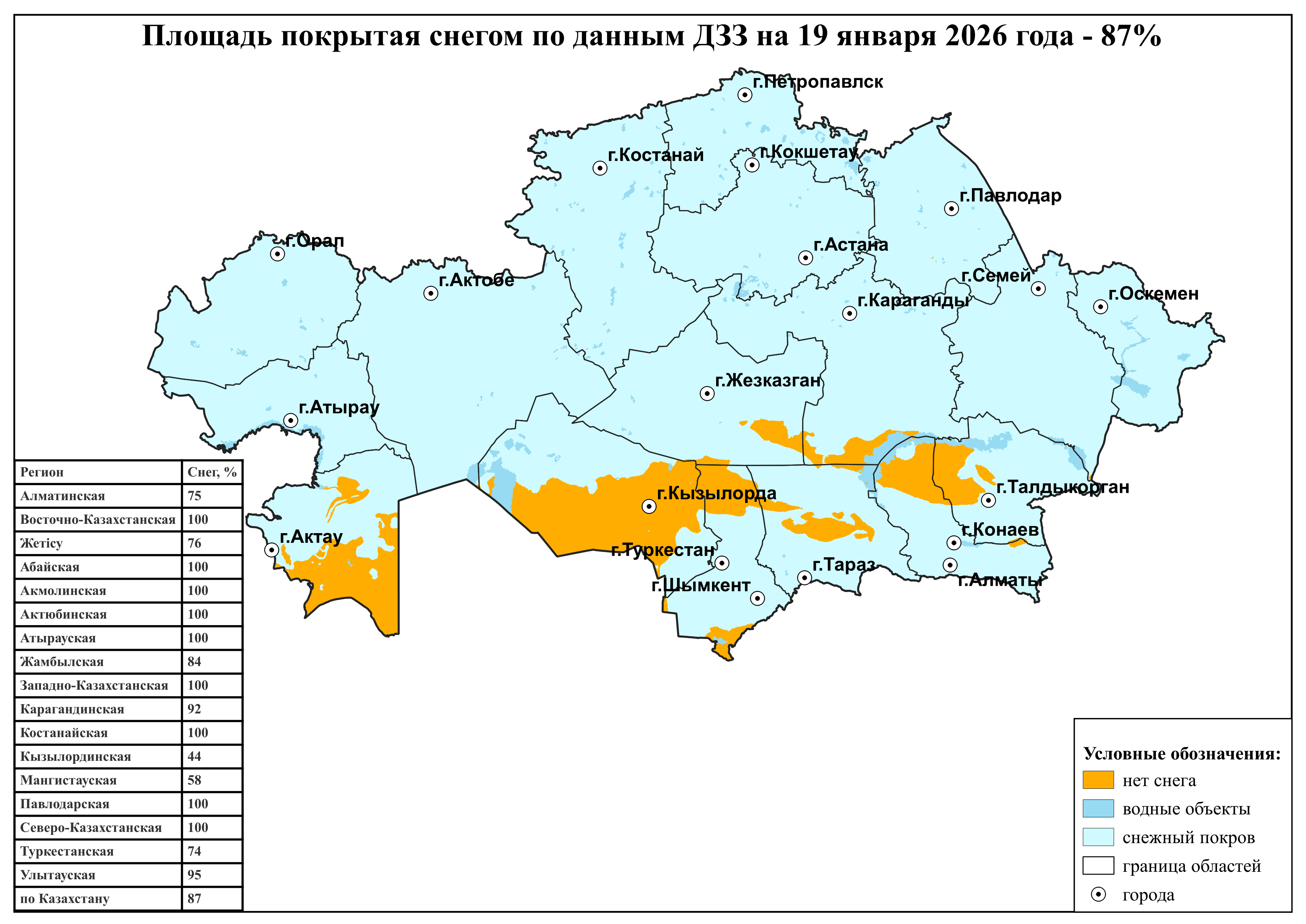 * Ақпарат күн сайын жаңартылып отырады. Жауын-шашын көп және қар жамылғысы күрт ұлғайған жағдайда карталар келесі күні жаңартылады.